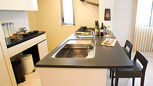 「キッチン天板が広くて使いやすいのが、お気に入りです。シンク横は、物を置いたり作業スペースにしたりと多様に使えるので、友達にも「使いやすそうでいいなぁ~」と羨ましがられるんですよ。色味も黒くて汚れが目立たないし、お掃除もしやすいので助かってます。」(奥様)