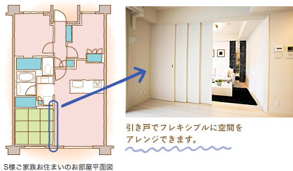 「子供部屋とリビングの間の引き戸は開けたままにして、広々使ってます。でも、ちょっとちらかったりしていて、お客さんに見せたくない時には、扉を閉めて使うつもりです。」(奥様)