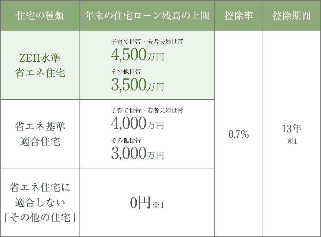 ※1.令和6年以降に新築の建築確認を受けた場合、住宅ローン減税の対象外。