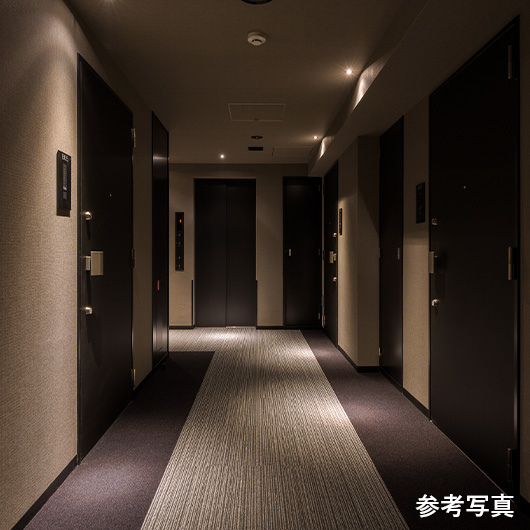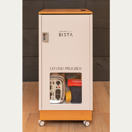 共用部にはルフォンプログレオリジナル防災備品を設置し、万が一の場合に対応。