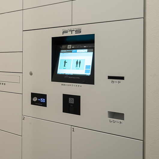 共用部にはルフォンプログレオリジナル防災備品を設置し、万が一の場合に対応。