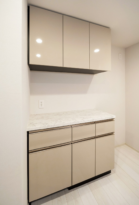 フィオレストーン天板の食器棚