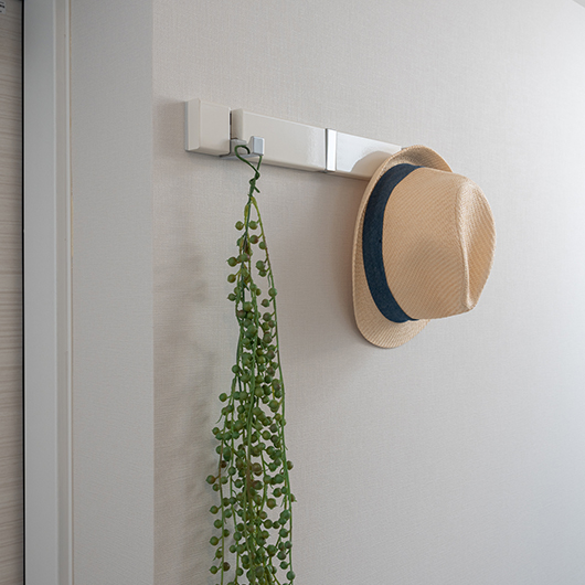 玄関の近くに帽子や小物が