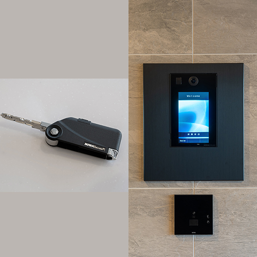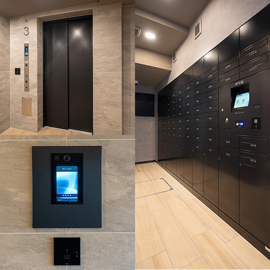 メールボックス/宅配ロッカー・インターホン・エレベーターのボタンに、非接触対応システムを採用。
