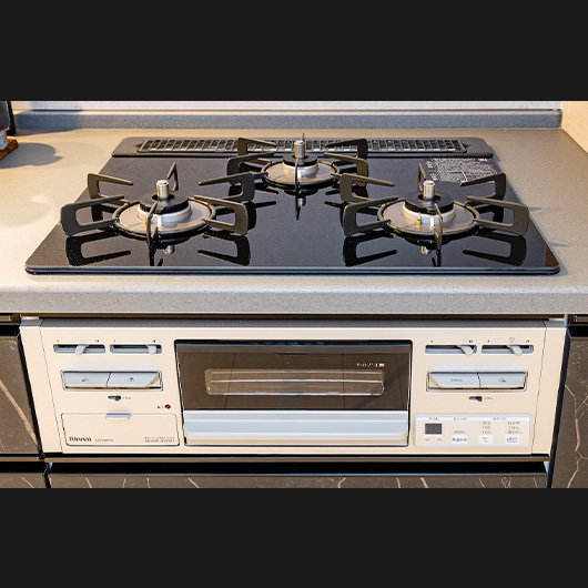 グリル付3口ガラストップコンロ