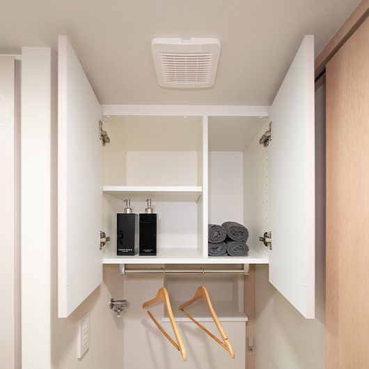 洗濯機上の吊り戸棚は